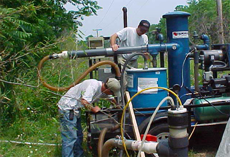 After analyzing the data obtained from the fracture transport and forensic chemistry analysis, IST has designed and is installing three separate treatment units to provide flexible remediation of the 5 acres impacted by LNAPL at the site. Recovery wells are plumbed to trailer units with ground-water treatment and vacuum recovery equipment.